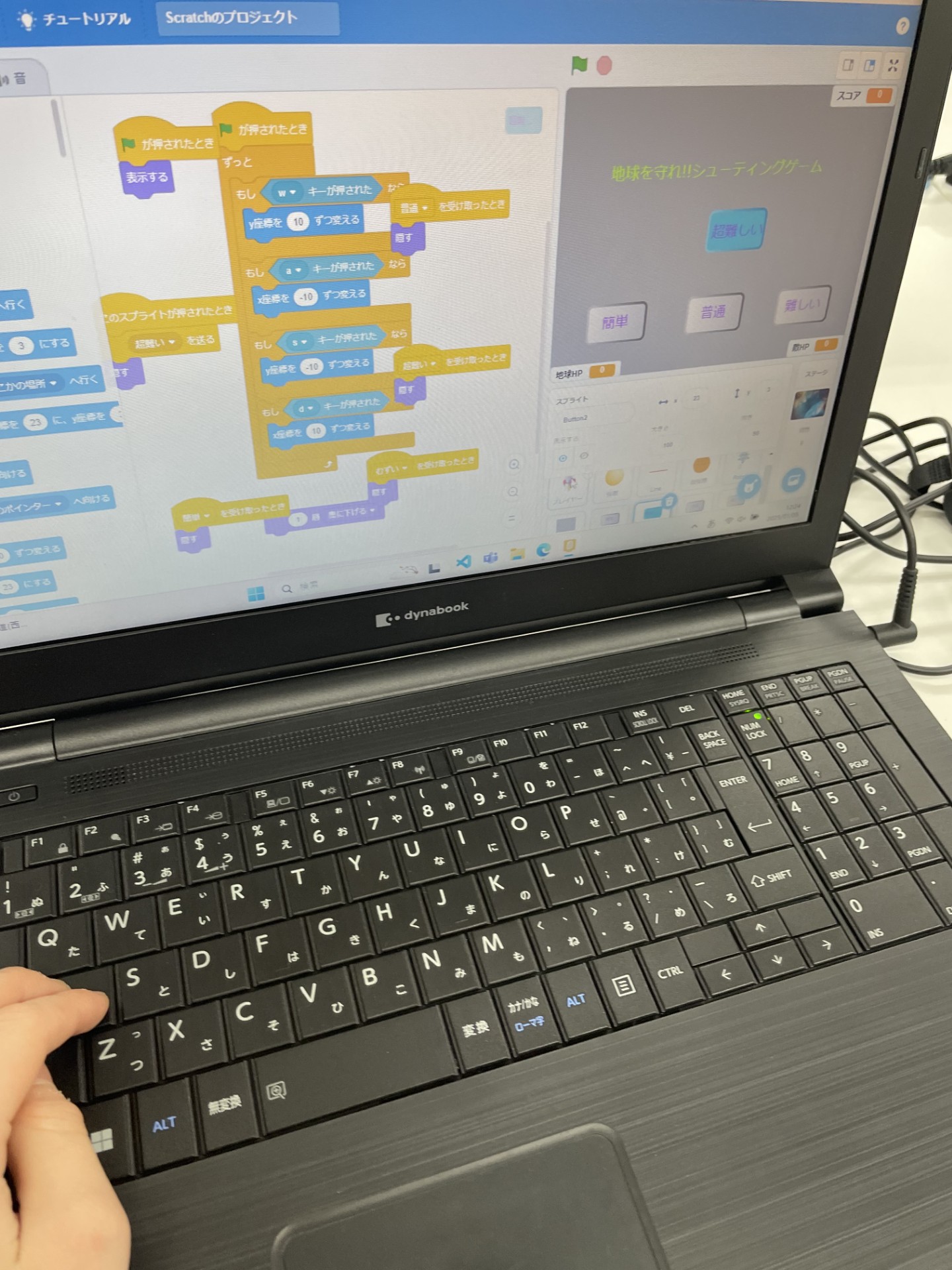 スクラッチでプログラミングを学んできたSくん。シューティングゲームのプログラミングが、今までの実習の中でとても印象に残ったようです。「座標」についての知識も付き、「クローンを作る」という命令も習得しましたね。